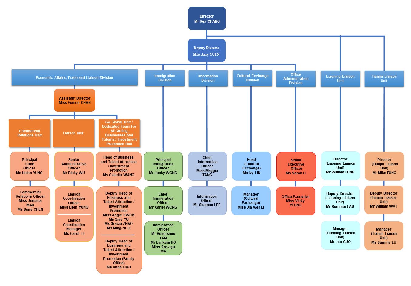 The Divisions and Liaison Units in the Beijing Office are as follows: