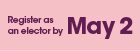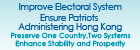 Register as an elector by May 2 Improve Electoral System   Ensure Patriots Administering Hong Kong The Chief Executive's 2020 Policy Address 2018 Legislative Council Kowloon West Geographical Constituency By-election Hong Kong's Legal Services Talent List Hong Kong Guangdong-Hong Kong-Macao Greater Bay Area Belt and Road Initiativeļ¼ŽHong Kong Common Recruitment Exam and Basic Law Test Purchasing Properties Located Outside Hong Kong Quality Migrant Admission Scheme 1868 Assistance to Hong Kong Residents Unit 24-hour Hotline CEPA Hong Kong Geopark AO Recruitment Exercise Scholarship for Prospective English Teachers