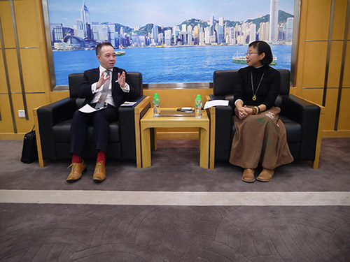 駐京辦助理主任黃敏(右)與「為正策士」召集人及聯合創辦人陸瀚民交流。